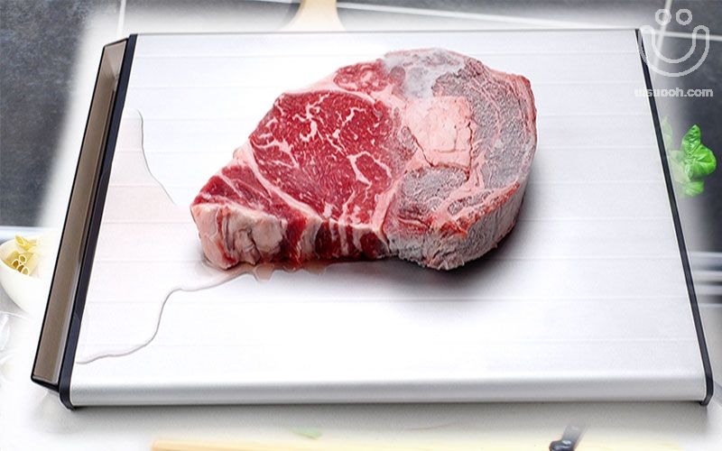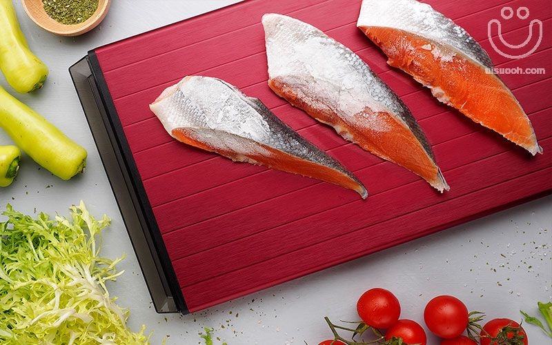 首先,將你要解凍的食材放上“奇想鮮解凍”上,這利用高科技熱傳導技術所製成的金屬檯面,